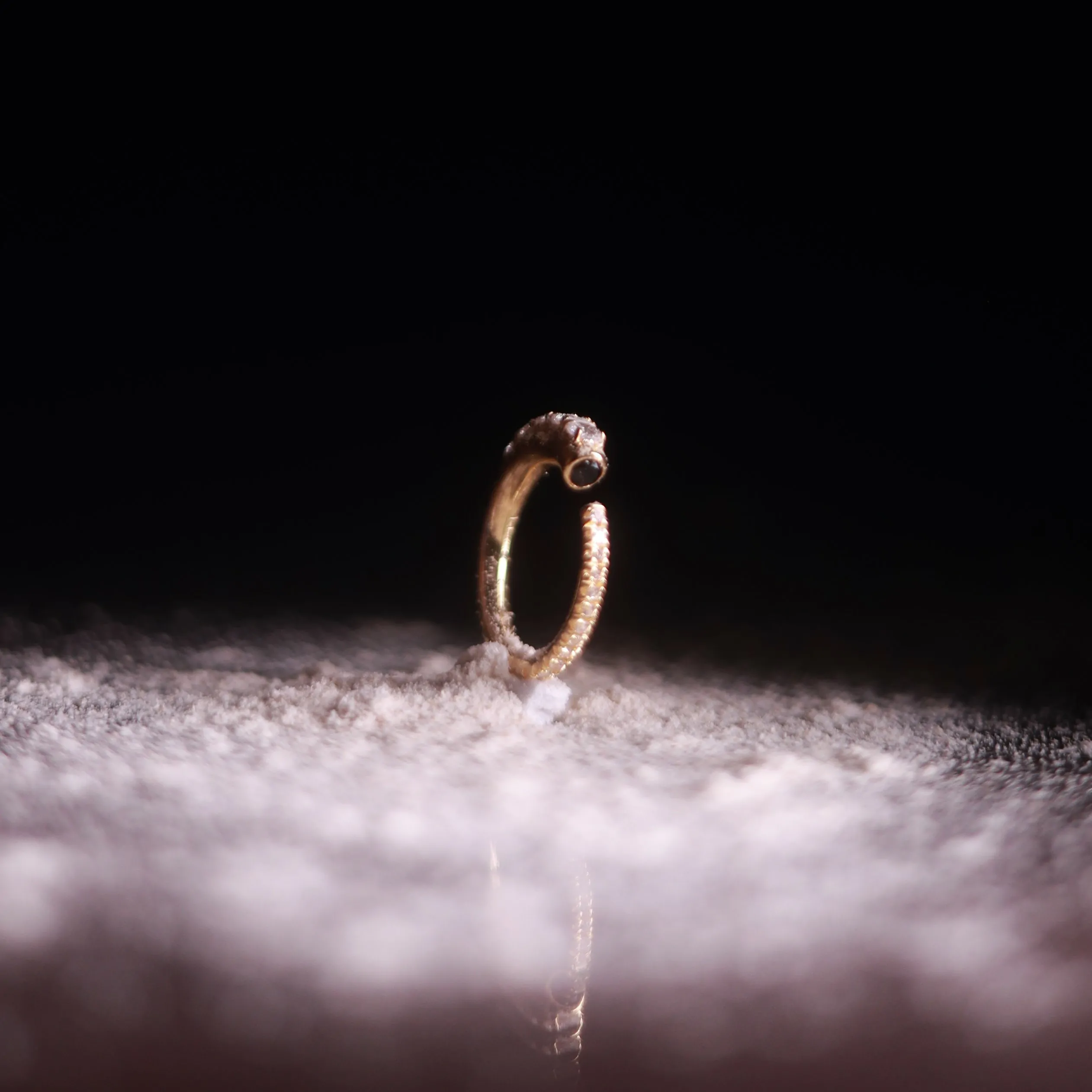 Minimalist loop structure featuring black spinel and gold detailing for a chic, contemporary style.