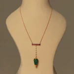 Garnet is revered in astrology for igniting strength, vitality, and emotional grounding. It is known to energize the wearer, inspire passion, and attract protective energies. The green meenakari element, though not a gemstone, symbolizes harmony and artistic expression, bringing a balanced visual contrast to the richness of the garnet.
