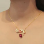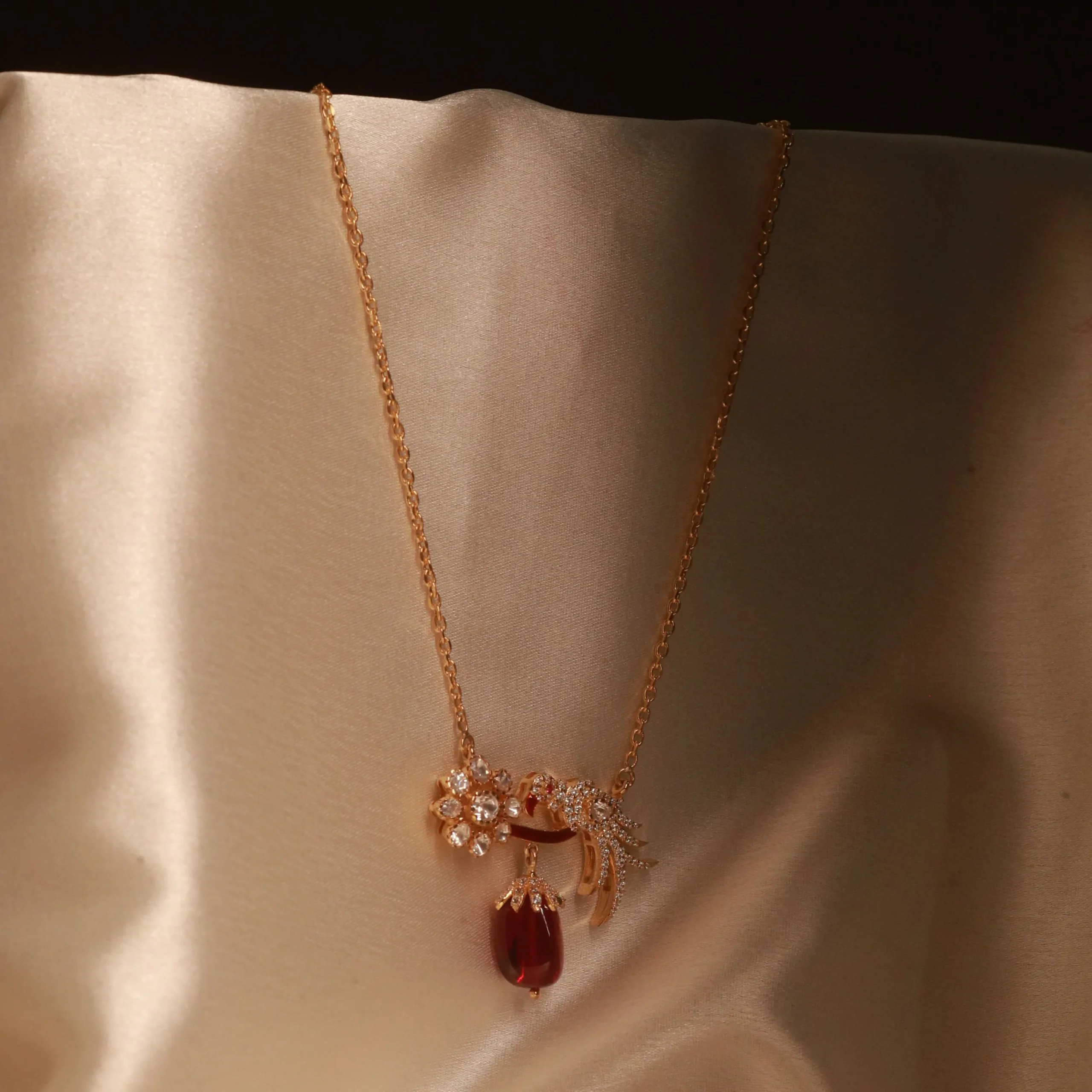 A playful, bird-inspired design combining multi-coloured gems with parrot-green accents for a vibrant, conversation-starting accessory.