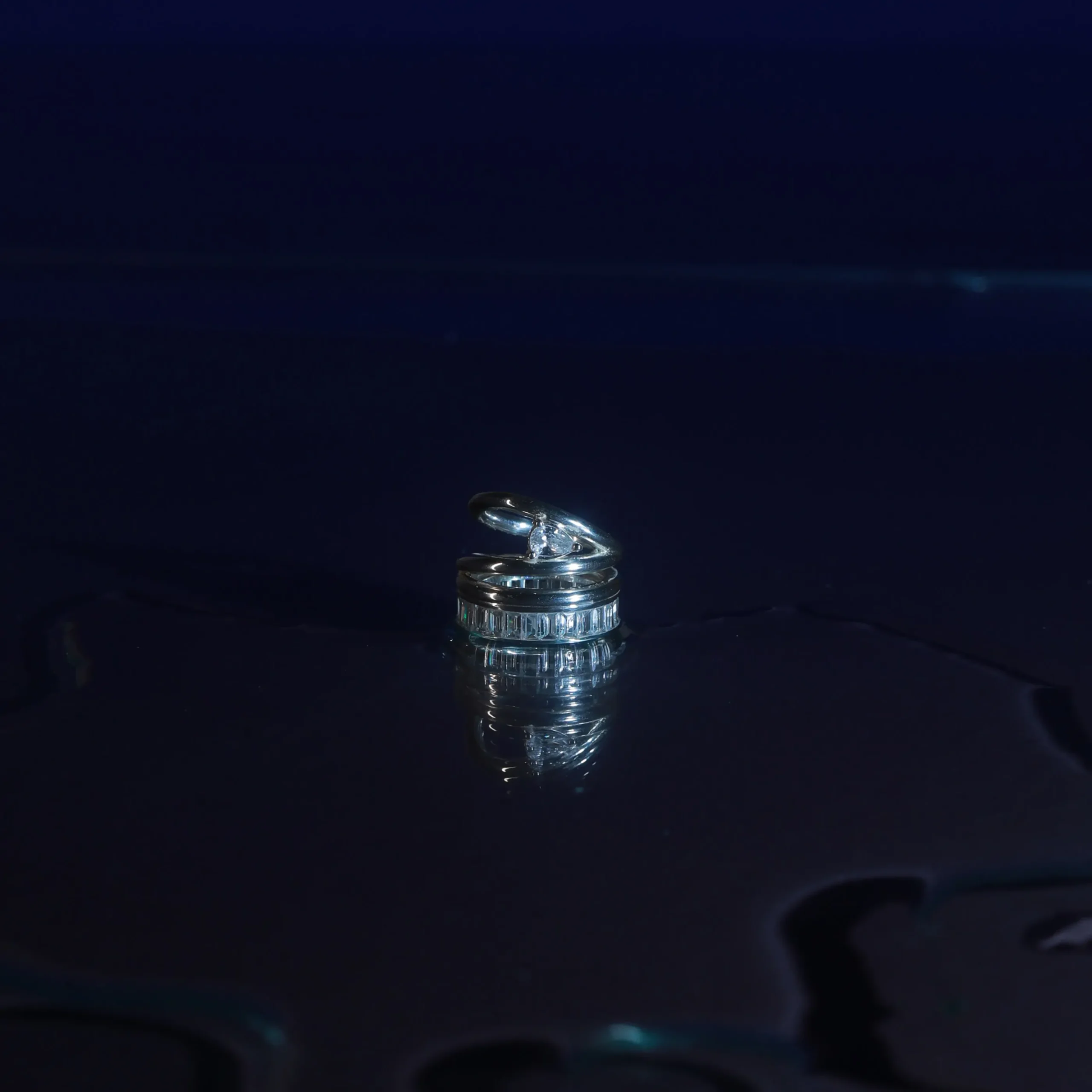 Layered silver bands designed to stack or stand alone, offering an artistic, versatile accessory.
