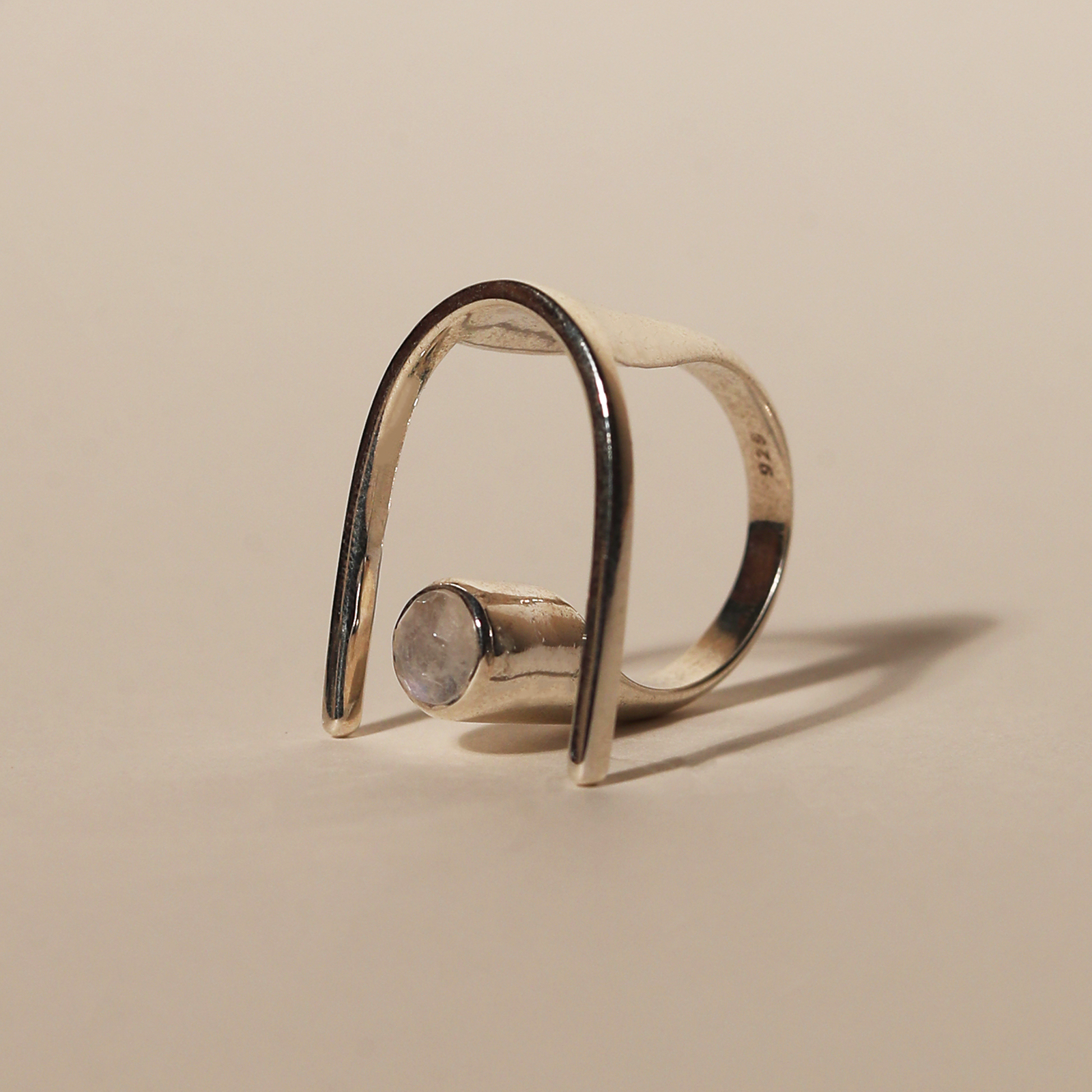 Handcrafted in 925 silver, Veil of the Moon is a delicate, sculptural ring that captures the quiet poetry of moonlight. Designed with a minimal open-band silhouette, the ring cradles a soft, luminous moonstone that appears to float gently within the silver form—subtle, restrained, yet deeply expressive. Its clean lines and airy structure make it effortlessly modern while remaining timeless in spirit.